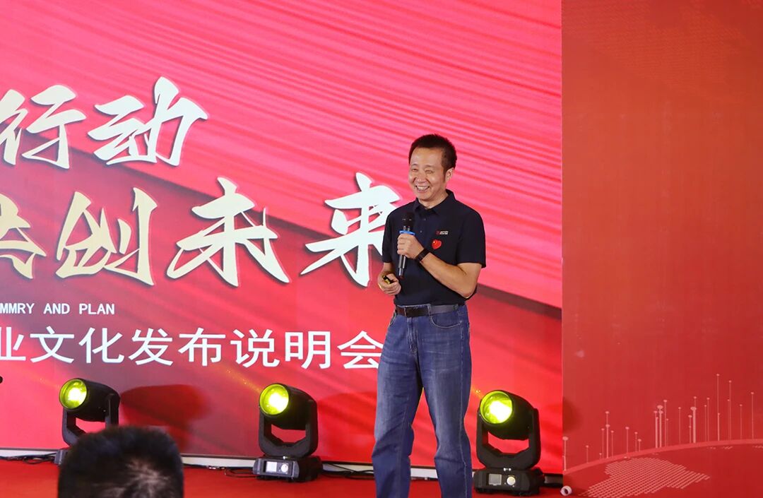 在熱烈的掌聲中,愛科賽博董事長白總發表致辭,并對企業文化進行了深度解讀。他深情回顧了愛科賽博企業發展歷程和團隊成長經歷,目前愛科團隊人數過千,其中研發占比過半,研發能力一直是愛科賽博發展的原動力,西安新總部園區的試運行是硬件能力的升級,而企業文化的迭代則是軟件能力升級的必要部分。